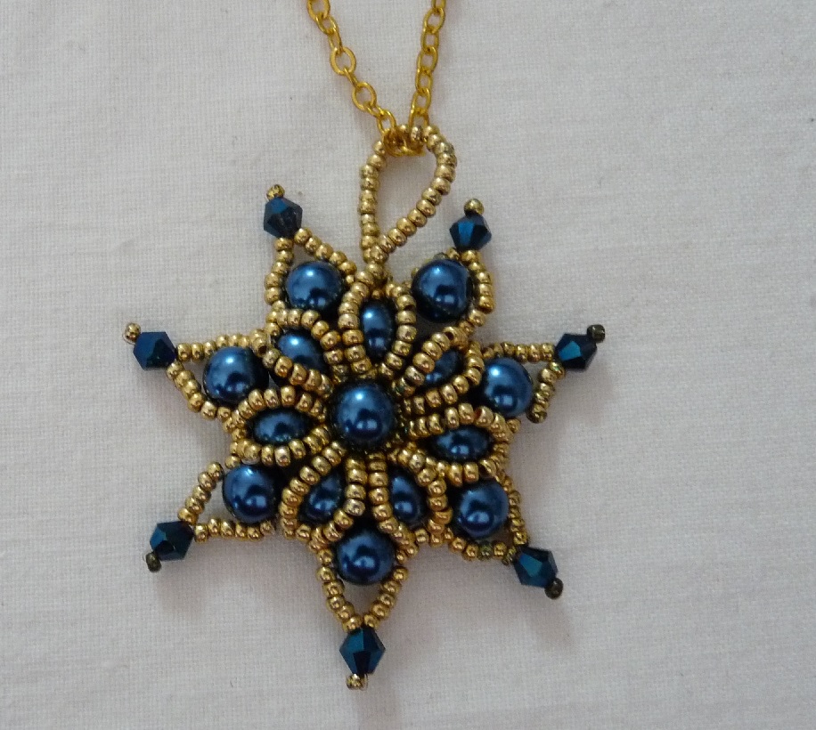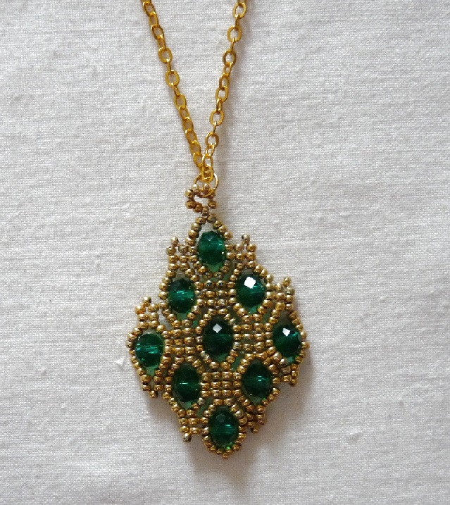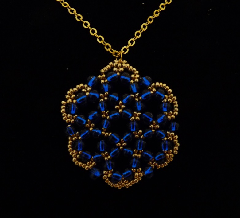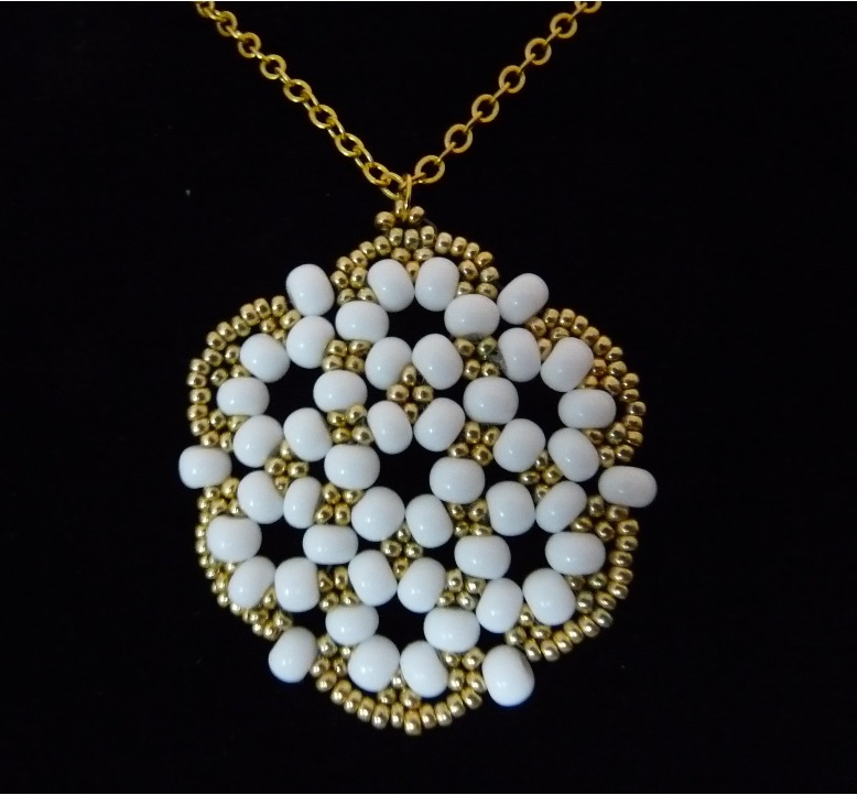 Materiál: skleněný rokajl Preciosa, vlasec 0,25 mm, bižuterní kov