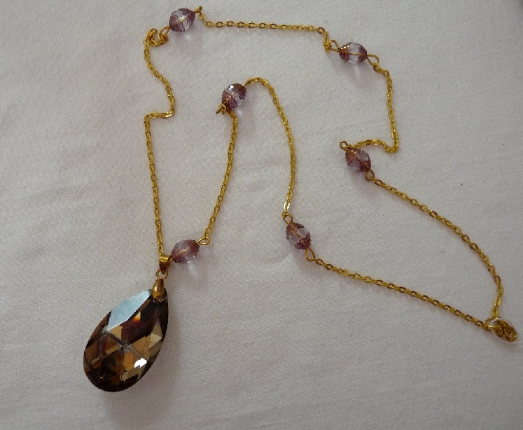Materiál: bižuterní kov, skleněné vinuté korálky, skleněný přívěsek